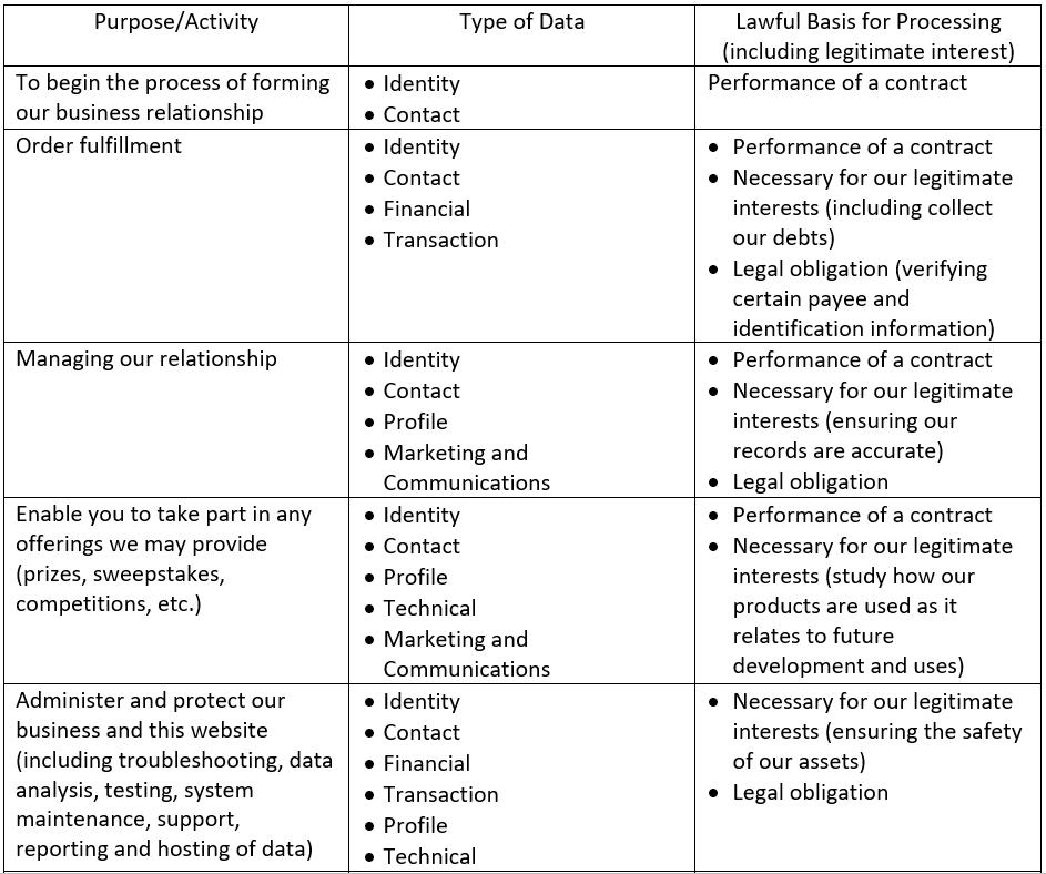 We use the information that we collect for the below purposes (alone or in combination with other pieces of information) and as permitted by applicable law.